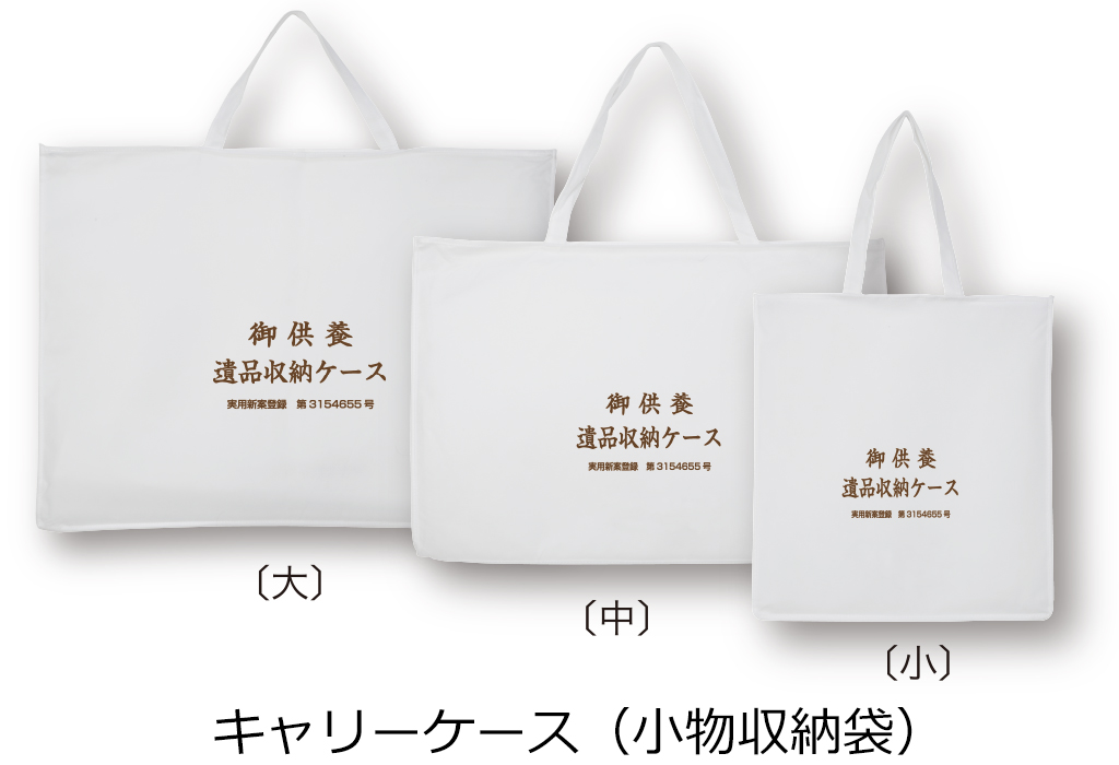 ※ふとん・衣類以外の御供養品は、付属のキャリーケース(外袋兼小物収納袋)に入れた上で、ケース内に収納できます。